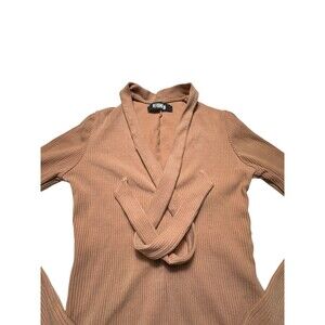 Reformation Size Small Ribbed Tie Neck Covered Back Brown Bodysuit #Z4-5