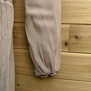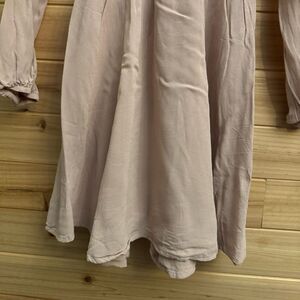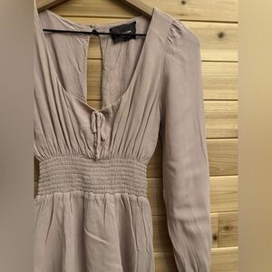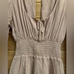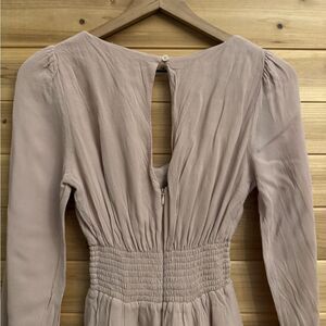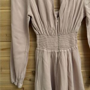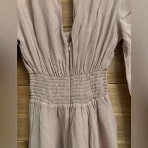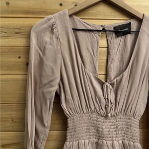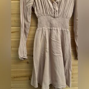 Pale Tan Pink Colored Long Sleeve Wilder Smocked Waistline Mini Dress With Keyhole Back Closure & Tie Bodice. Tag Says Size Is A 12 Petite, Measures Very Small Like An XS, See Measurements