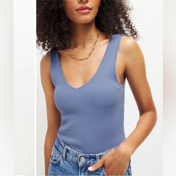 Reformation Slate Blue Ribbed Tank Top
