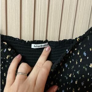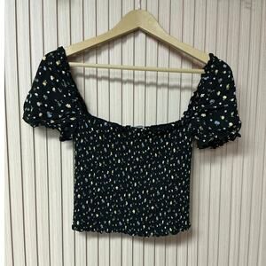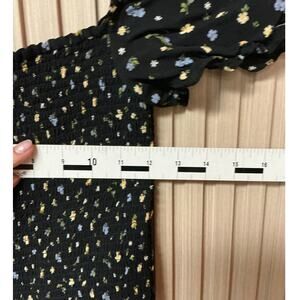Reformation Smocked Puff Sleeve Blouse Black Floral Print Size M