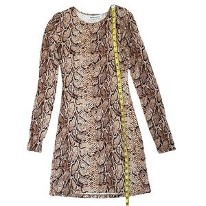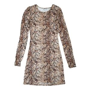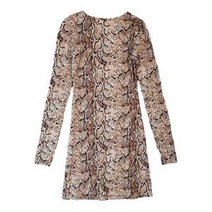Reformation Snakeskin Fitted Long Sleeve Dress Size XS Snake Mini Brown Beige