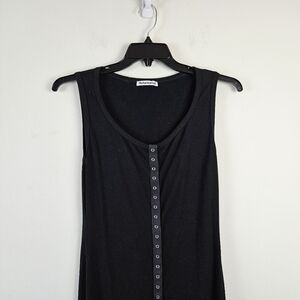 Reformation Snap button down Black Ribbed Sweater dress Large Sleeveless Bodycon