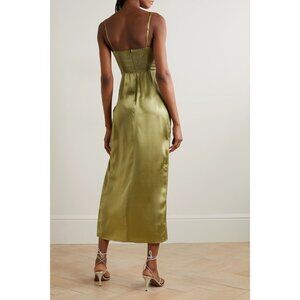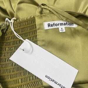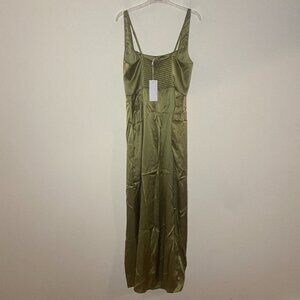 Reformation Solay Olive Green Silk Dress 6 Bridesmaid Green Midi