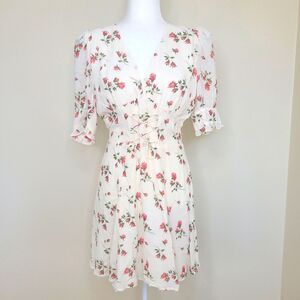 Reformation Steph Dress In Florence Size 10 Floral Print Lace Up front Flowy