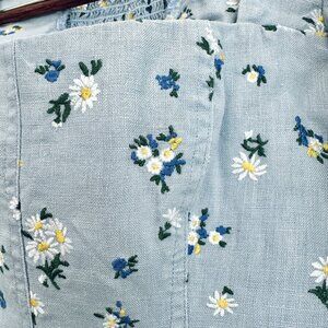Reformation Stilton Linen Top - Mineral Daisy Embroidery