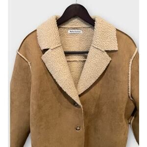 Reformation Stoke Suede Faux-Shearling Coat Size XL
