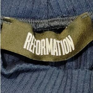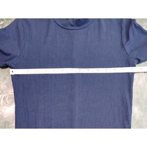 Reformation Stowe Ribbed Mock Neck Mini Dress Short Sleeve Navy Womens Size S