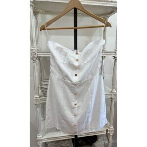 Reformation Strapless Sheila Linen Mini Dress White Size 10 Y2K Gold Button