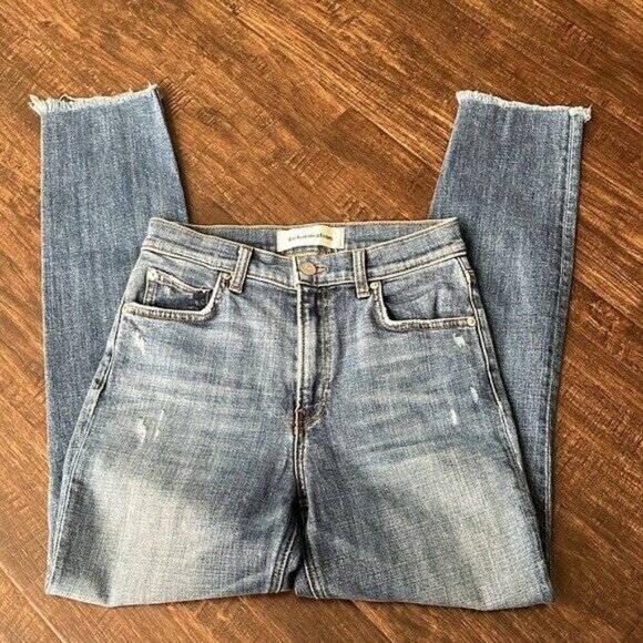 Reformation Stretch Crop Cigarette Tigris Blue Raw Hem High Rise Jeans Size 26
