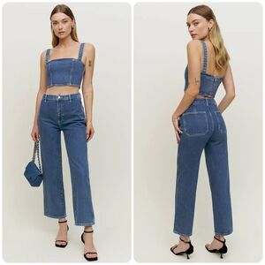 The Sunny Jeans by Reformation in Cascade wash. High rise. Belt loops. Two back pockets. Cropped. Gently worn with no visible flaws- worn once. Measurements in photos. Size 6.