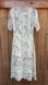 Features: midi dress that has a bohemian vibe that's perfect for vacation, but also works for a day out in the city. It's made from lightweight georgette and trimmed with delicate, sheer lace that reveals just the right amount of skin through the slim-fitting bodice and floaty skirt. Only lined from waist partially down. Off white cream with dainty blue and green floral print. Similar to the Reformation Woodson dress