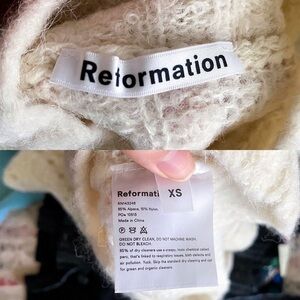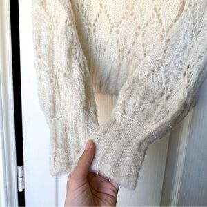 Reformation Sweater Lexi Fluffy Fuzzy Pointelle Alpaca Open Knit Ivory XS GUC