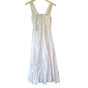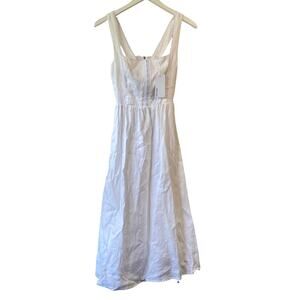 Reformation Tagliatelle Linen Dress in White. Size 2. Features back smocking, adjustable straps, curved neckline, back zipper closure, corset style bodice, lace trim details, a-line silhouette, midi length. 100% linen. Style 1310275. NWT / New with tags.