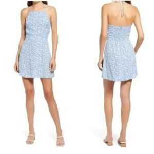 Reformation Tasha Floral Halter Neck Minidress Azzurro B385