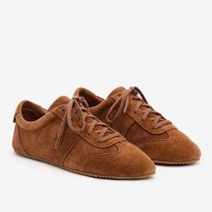 Wear me. Shop the Terra Sneaker from Reformation, a flat sneaker with a round toe, panel detailing, and adjustable tie laces.