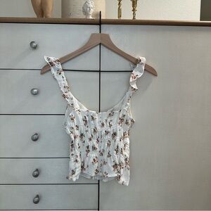Floral Ref tank in excellent used condition. Size M but runs small in my opinion, more like a small/xs. Top is stretchy as it is smocked. Measurements upon request.