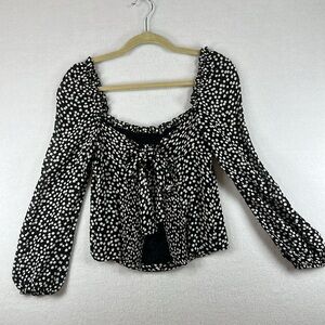 Reformation Top Black/White Women’s Size 8 Bacio Tie-back Crop Like New