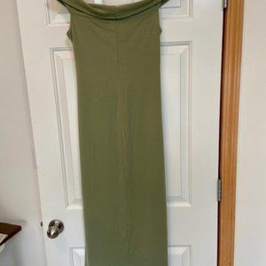 Super comfortable off the shoulder knit dress from Reformation. Size medium. Color is artichoke, which is a light green sage.