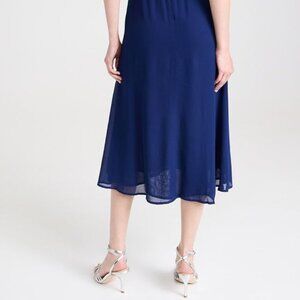 This elegant dress features a dark navy color, perfect for both formal and semi-formal occasions. Its classic style makes it suitable for weddings, parties, or evening events.