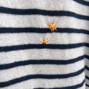 Upcycled with orange stitching to cover holes. Cuff has discolarion. Recycled cashmere. Priced as is. Funky boho piece. Eco friendly upcycling. Womens small.