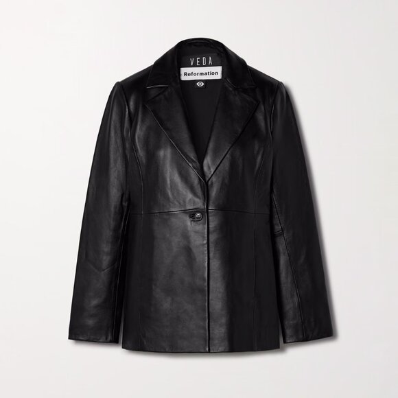 Reformation Veda Bowery Leather Blazer Black Size XS