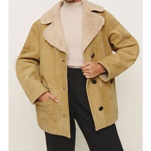 Reformation Veda LucaTan Suede Shearling Coat Jacket Size Small