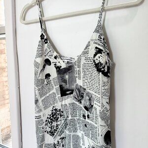 Reformation Ventura Climate News print Mini Slip Dress Short Black White XS