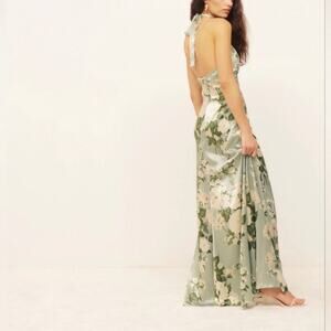Reformation Veria Silk Halter Maxi Dress Green Floral 4