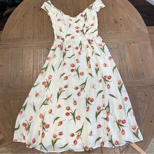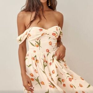 Reformation Violet Tulip Dress Women’s 8 Off The Shoulder Midi Feminine NWT