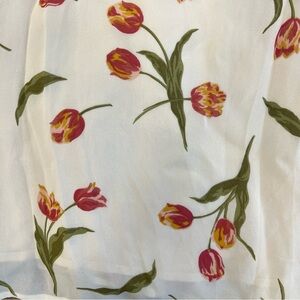 Yellowish cream with red/orange/yellow / green tulip pattern