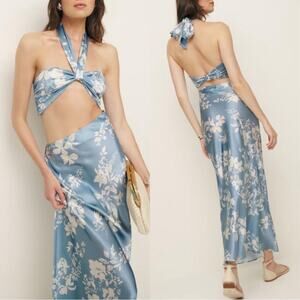Reformation Vivi Silk Aliso Floral Halterneck Cutout Maxi Dress Size 8