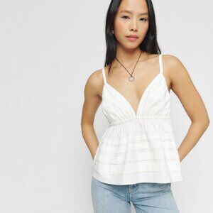 Reformation | Vivien Peplum V Neck Top in White US XLarge