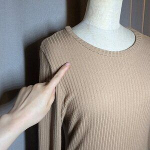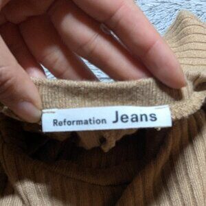 Reformation Wednesday Dress Midi Camel Tan Ribbed Long Sleeve Stretch Large