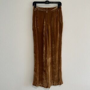 Reformation Wes Gold Silk Velvet Blend Wide Leg Pants