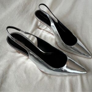Reformation Westlynn Silver Metallic Point Toe Heel Size 9 NWOT