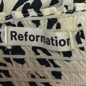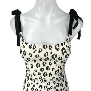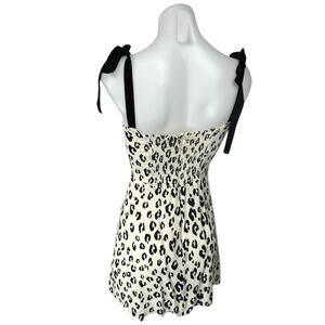 Reformation White Black Leopard Animal Print Sleeveless Smocked Tie Strap Mini A-line Tank Dress Size 0