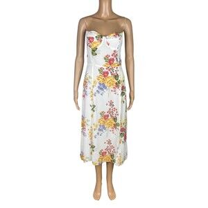Reformation White Floral Bouquet Crepe Midi Dress 100% Viscose Size 8