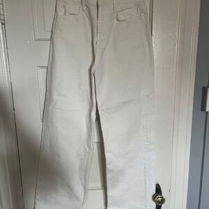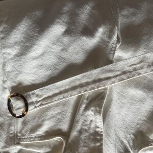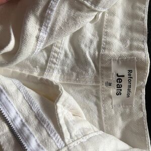 High-waisted white jeans from Reformation. Included belt! Cut is wide leg. High quality denim and very flattering. Size 28 but fits more like 26/27