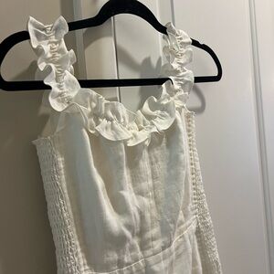 Reformation White Linen Ruffle Mini Dress