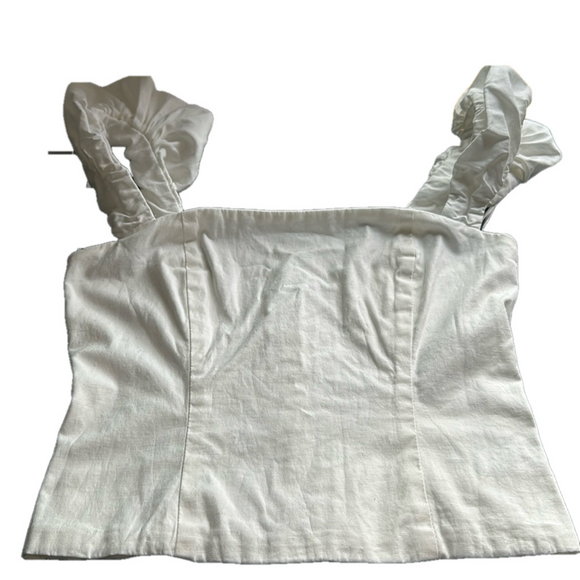 Elegant white top with ruffle straps. Perfect for casual or dressy occasions.