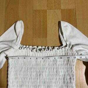 Reformation all white long sleeve crop top with a smocked bodice and square neckline. Size medium in excellent preowned condition.