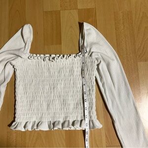 Reformation White Smocked Long Sleeve Crop Top Medium