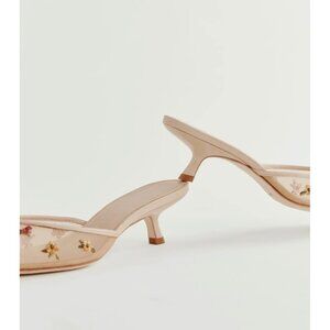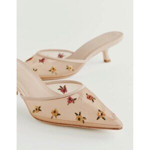 Reformation Wilda Pointed Toe Kitten Mule in Embroidered Nude Mesh 9