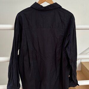 Reformation Will Oversized Button down Shirt in Black, size medium. Designed to be oversized and relaxed throughout. This woven fabric is made from 98% Organic Cotton and 2% Spandex. Wash cold + dry flat.