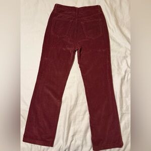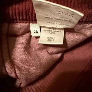 Reformation Winnie corduroy pants in rust. Size 28 petite, some creases in the corduroy near crotch, as seen in photos.