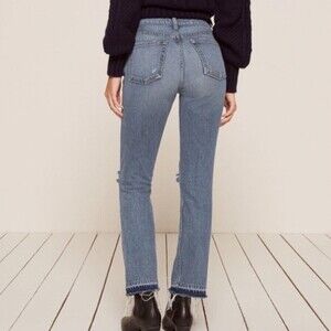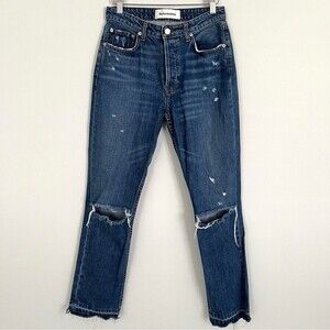 Reformation Winona Distressed Mid-Rise Slim Straight Jeans, Size 25