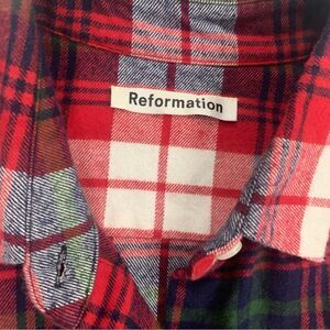 Reformation Women Plaid Flannel Button Up Shirt Size Small Red White Long Sleeve