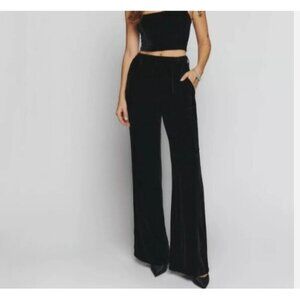Reformation Women's 12 WES Wide Leg Velvet Pants Pleated Silk Bld NWT Ins. 32.5"