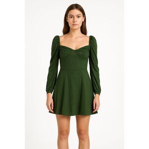 Reformation Womens Green mini dress long sleeves size 6 peasant cottage boho. This elegant green dress features long sleeves and a flattering silhouette, perfect for any occasion. Its timeless design ensures you look stylish and sophisticated. Great preowned condition from smoke free and pet free home.