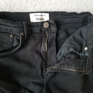 Reformation Women's High Rise Skinny Black Wash Denim Jeans Moto Grunge Essential Normcore Capsule Jeans